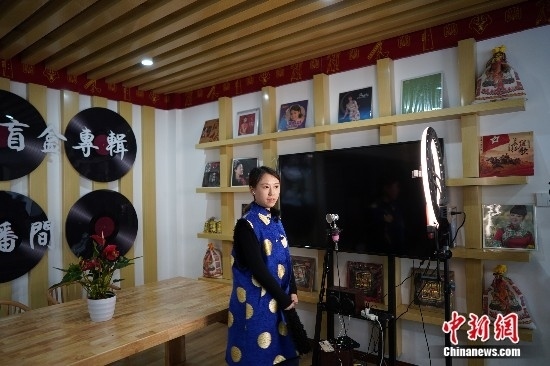 商戶(hù)正在直播帶貨。中新網(wǎng)記者 劉湃 攝