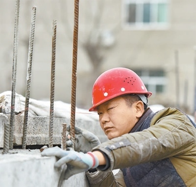 劉玉華在吊線找直。王光華攝(人民視覺)