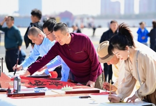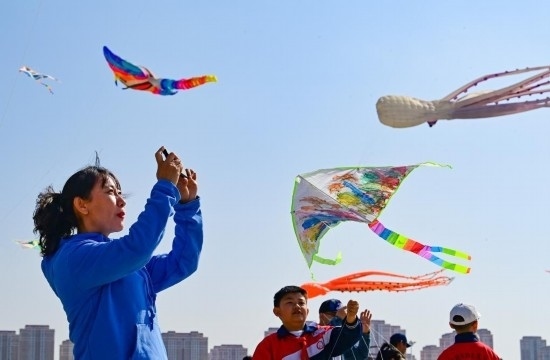 當(dāng)日,內(nèi)蒙古鄂爾多斯市康巴什區(qū)在亞洲雕塑藝術(shù)主題公園舉辦“紙鳶飛舞頌春色”系列活動,風(fēng)箏愛好者和文學(xué)書法愛好者在活動中彩繪風(fēng)箏,詠詩賦詞,放飛紙鳶,享受春光。