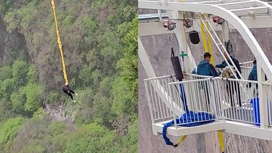 ·游客蹦極被掛半空半小時,河南新鄉(xiāng)寶泉崖天下景區(qū):突遇停電,手動搖上來。