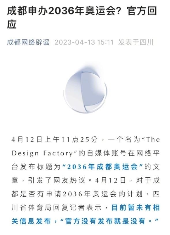 ·官方回應(yīng)成都申辦2036年奧運(yùn)會:官網(wǎng)未發(fā)布就是沒有。