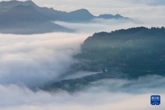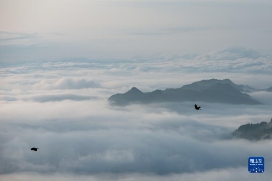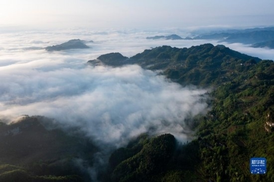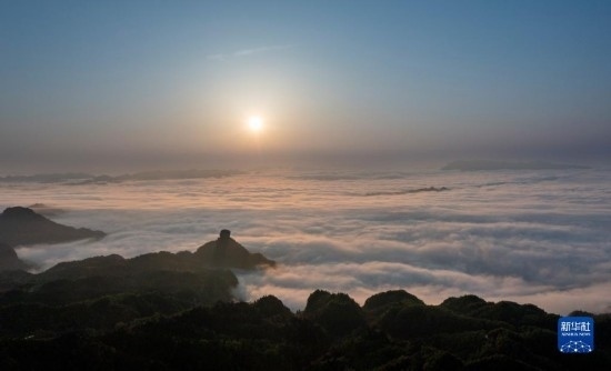 當(dāng)日,位于重慶市南川區(qū)的世界自然遺產(chǎn)地金佛山雨后放晴,山間升騰起的水汽匯聚成云海在山巒之間流淌,美不勝收。