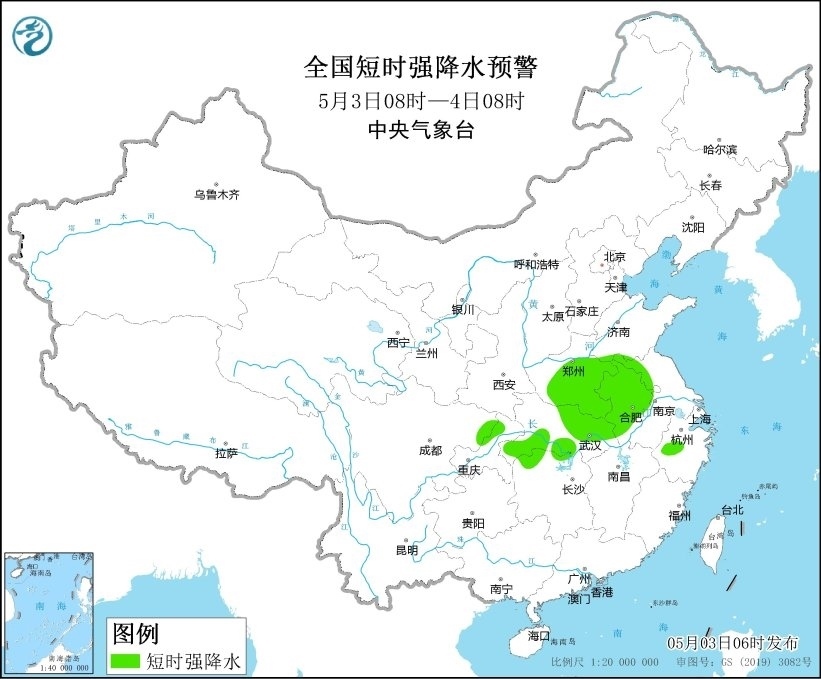 預(yù)計(jì)5月3日08時(shí)至4日08時(shí),河南東部和南部、安徽中北部、湖北東部等地的部分地區(qū)將有8-10級(jí)雷暴大風(fēng)或冰雹天氣;山東南部、河南中東部和南部、安徽中北部、江蘇西北部、湖北東部和西南部、湖南北部、四川東北部、重慶東北部等地的部分地區(qū)將有短時(shí)強(qiáng)降水天氣,小時(shí)雨量20-40毫米,局地可達(dá)50毫米以上。