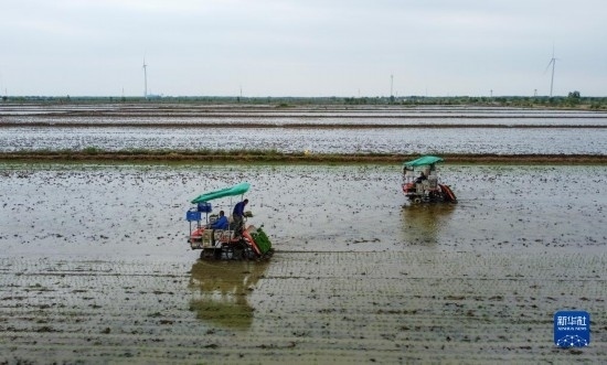 臨近立夏節(jié)氣,天津市各涉農(nóng)區(qū)組織開展大規(guī)模機(jī)械化水稻插秧,田間地頭一派繁忙景象。