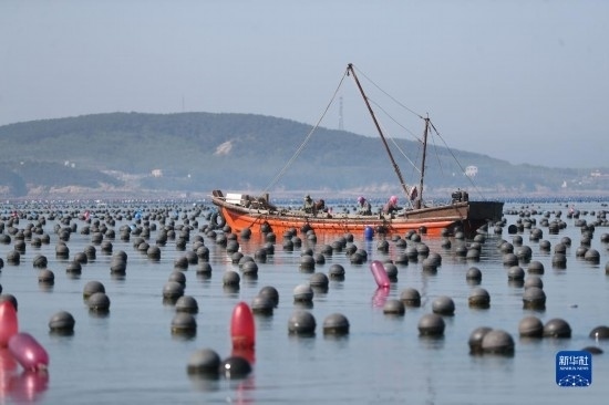 目前正值遼寧省海上生產(chǎn)時節(jié),大連市長海縣廣鹿島鎮(zhèn)的漁民抓緊時間進(jìn)行海產(chǎn)投苗作業(yè),一片繁忙景象。近年來,廣鹿島鎮(zhèn)加快推進(jìn)現(xiàn)代海洋牧場建設(shè),積極打造多種海產(chǎn)的繁育養(yǎng)殖基地,形成了優(yōu)質(zhì)、高效、安全的養(yǎng)殖格局。