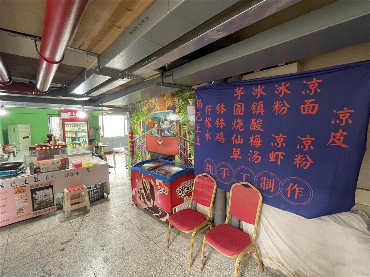 也有居民對(duì)游客持歡迎態(tài)度。從掛有“居民住宅,謝絕參觀”招牌的入口進(jìn)入白象居,是居民樓的第12層,也是游客主要打卡的樓層。這一層均為門面房,白象居居民在這層開有飯店、咖啡店、小賣部等。在12層中間位置開餐館的劉先生告訴極目新聞?dòng)浾?,白象?2層以上是居民樓,游客不能進(jìn)去,游客從12樓只能向下到8樓的平臺(tái)位置。從8樓至12樓,很多房屋都被開發(fā)成咖啡屋、民宿等,另有一部分房屋現(xiàn)在還空置出租中。