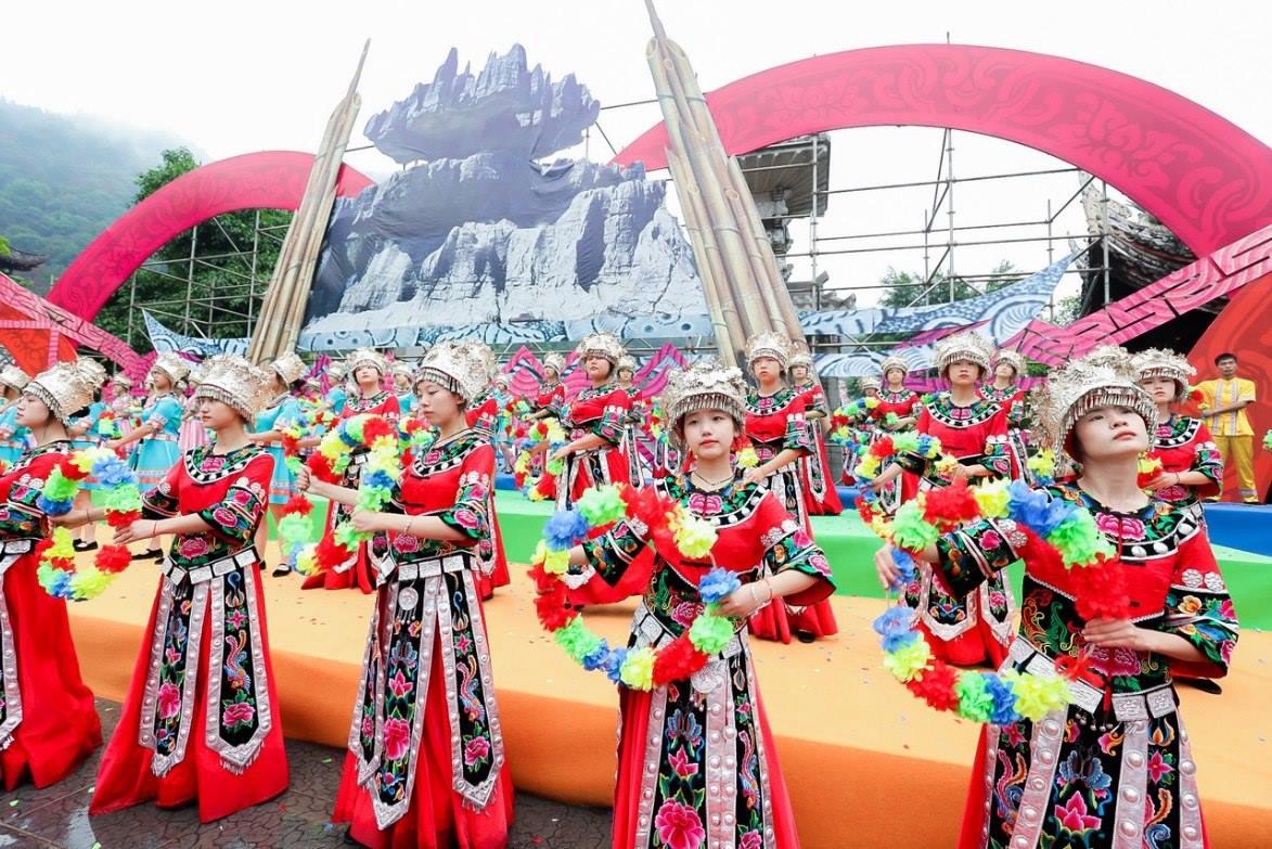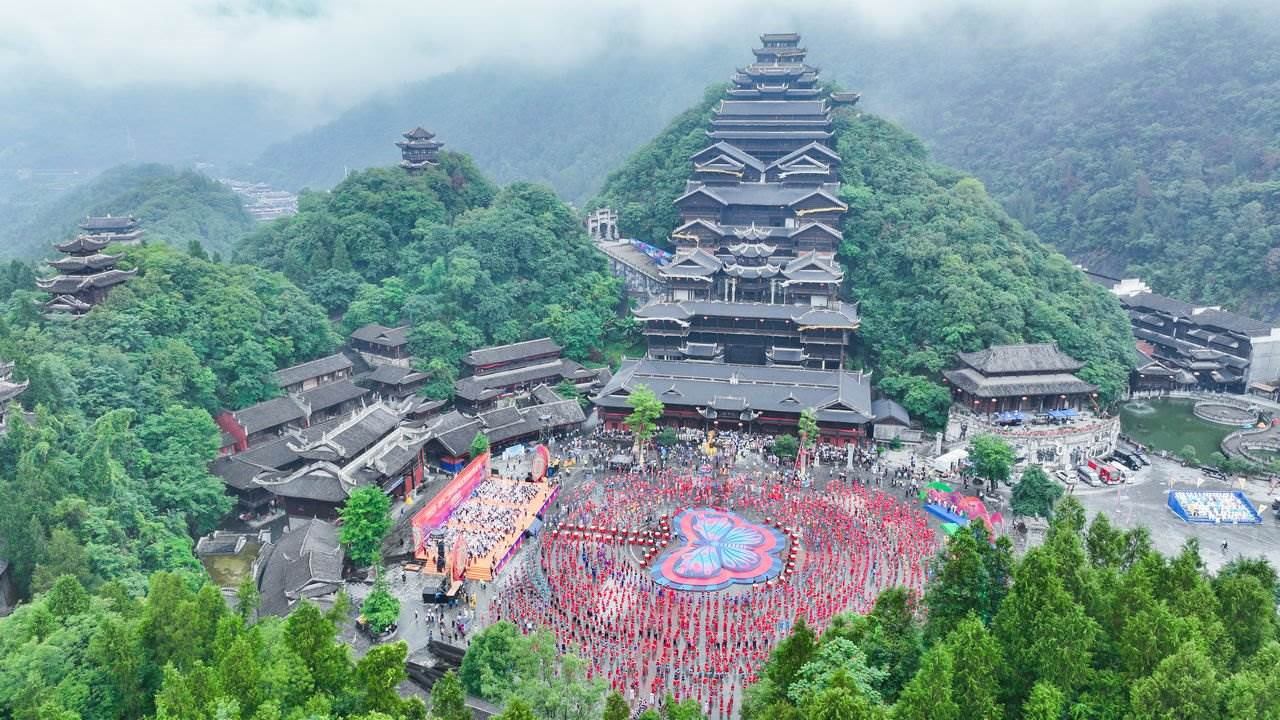 5月26日,2023第十二屆中國(guó)烏江苗族踩花山節(jié)在重慶彭水拉開(kāi)序幕。上萬(wàn)名苗鄉(xiāng)兒女身著節(jié)日盛裝聚集在這里,共跳踩花山、齊唱“嬌阿依”,現(xiàn)場(chǎng)一片歡樂(lè)的歌舞海洋,場(chǎng)面壯觀。