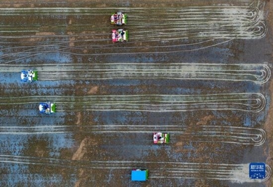 5月30日,在淮安市洪澤區(qū)岔河鎮(zhèn),人們在插秧節(jié)上比賽插秧(無人機照片)。