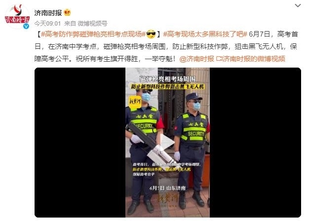 ·高考防作弊磁彈槍亮相山東濟南考點現(xiàn)場:防止新型科技作弊,狙擊黑飛無人機。