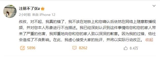 【8點見】曝光地鐵大叔當(dāng)事女子發(fā)文道歉!