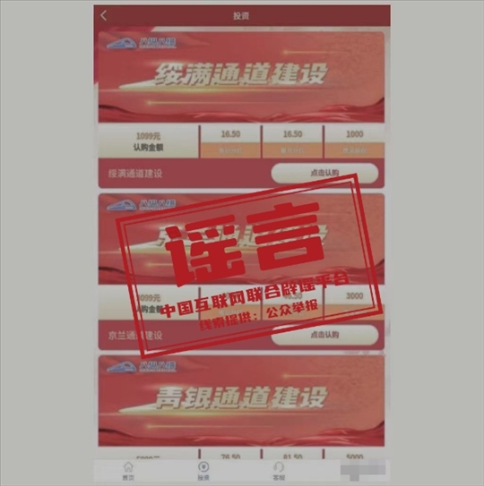 真相:近期,中國國家鐵路集團(tuán)有限公司接到群眾來電咨詢,反映一款名為“八縱八橫”APP程序自稱是國鐵集團(tuán)授權(quán)推出的理財產(chǎn)品,設(shè)有“呼南通道建設(shè)”“沿海通道建設(shè)”“京蘭通道建設(shè)”等9款投資理財項目,并將國鐵集團(tuán)公司簡介、新聞報道等內(nèi)容在APP中用于宣傳推廣。對此,國鐵集團(tuán)發(fā)布嚴(yán)正聲明稱,國鐵集團(tuán)及所屬單位從未授權(quán)或利用其他網(wǎng)站、APP、微信公眾號、微博等形式以“國鐵集團(tuán)”或“中國鐵路”的名義銷售投資理財產(chǎn)品,也沒有通過這樣的方式籌集鐵路建設(shè)資金。不法分子利用“八縱八橫”APP程序所實施的行為和發(fā)布的內(nèi)容已涉嫌詐騙,請公眾提高警惕,謹(jǐn)慎區(qū)分,注意防騙。如已被騙,請立即向公安機關(guān)報案。(來源:“中國鐵路”微信公眾號)