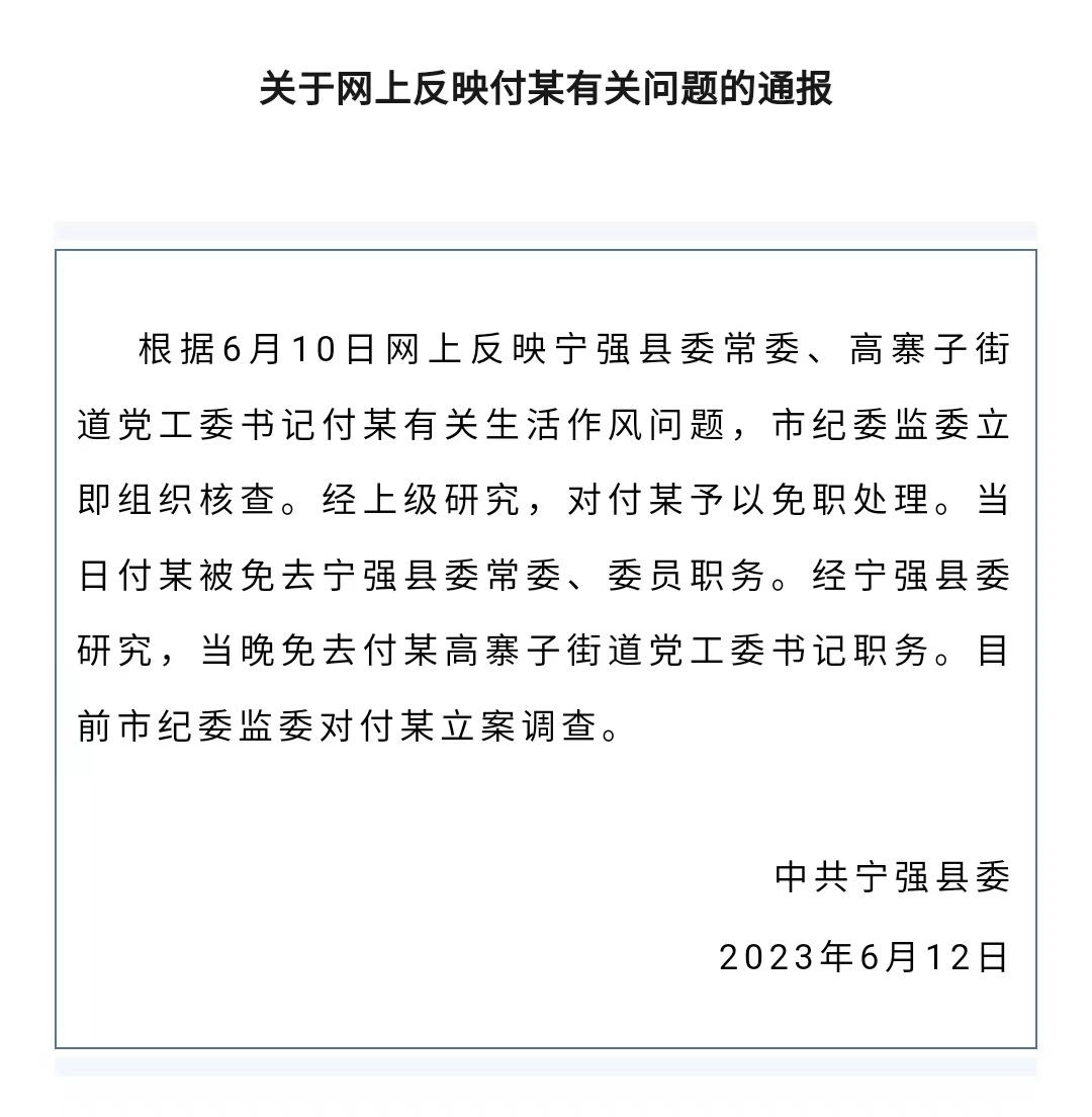 ·官員被舉報與女同事有不正當關系,陜西寧強:免職,立案調查。