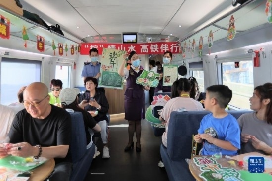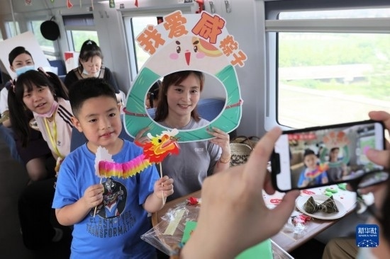 端午節(jié)前夕,鐵路上??瓦\(yùn)段在列車上邀請旅客參加端午民俗活動,迎接端午佳節(jié)。
