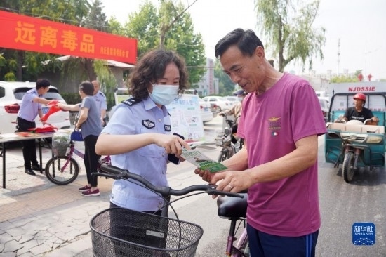 6月25日,河北省邢臺(tái)市內(nèi)丘縣公安局禁毒中隊(duì)民警向群眾宣傳禁毒知識(shí)。