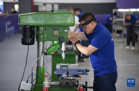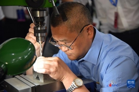 6月27日,參賽技術(shù)工人進(jìn)行數(shù)控銑工技能比拼。