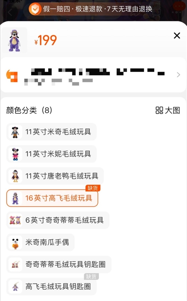 9月27日中午11點(diǎn)多,紅星新聞?dòng)浾咴谏虾5鲜磕針?lè)園官方旗艦店看到,該系列商品同一用戶每天購(gòu)買總數(shù)量至多2件,16英寸高飛毛絨玩具、高飛毛絨玩具鑰匙圈均顯示“缺貨”。記者咨詢客服是否還會(huì)補(bǔ)貨,截至發(fā)稿時(shí)未收到回復(fù)。