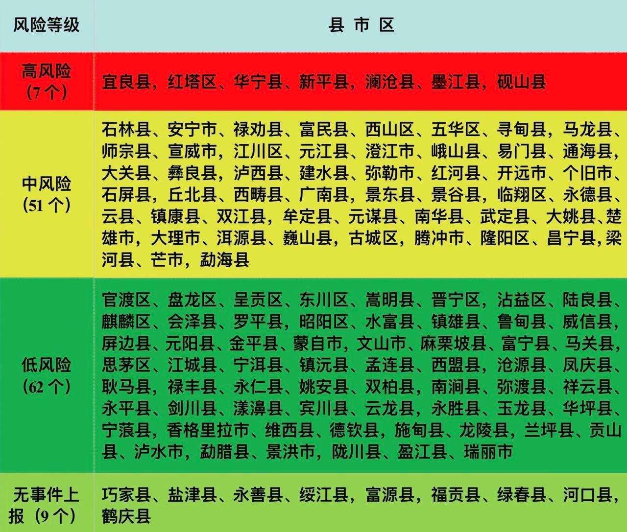 為切實維護(hù)廣大人民群眾身體健康和生命健康,有效減少有毒野生菌中毒事件發(fā)生,云南省依據(jù)2020—2022年全省野生菌中毒數(shù)據(jù)并結(jié)合各地有毒野生菌種類(重點關(guān)注中毒致死的野生菌亞稀褶紅菇,劇毒鵝膏類等),將云南所轄129個縣(市、區(qū))野生菌中毒風(fēng)險分為高、中、低三個等級,累計中毒事件起數(shù)≥100起或死亡人數(shù)≥3人的地區(qū)劃定為高風(fēng)險地區(qū),累計中毒事件起數(shù)為30—99起或死亡人數(shù)為1—2人的地區(qū)劃定為中風(fēng)險地區(qū),累計中毒事件起數(shù)<30起且無死亡的地區(qū)劃定為低風(fēng)險地區(qū),繪制了《2023年云南省有毒野生菌中毒風(fēng)險分級地圖》《2023年云南省有毒野生菌中毒風(fēng)險分級表》。