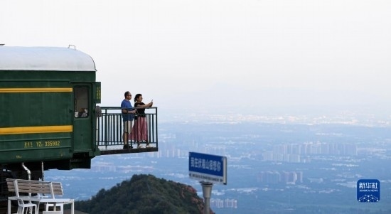 7月9日,游客在新密市伏羲山一處觀景臺(tái)游玩。