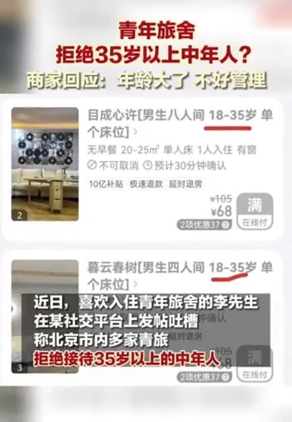 近日,#青旅不接待35歲以上人群#話題沖上熱搜,引發(fā)熱議。該話題源于一網(wǎng)友發(fā)布的帖子。該帖子表示,某平臺(tái)上北京不少青旅商家拒絕年齡35歲以上的人群入住。該網(wǎng)友詢問(wèn)原因,得到的回答是“年齡大的上下床不安全容易出事?!睂?duì)此答復(fù),不少網(wǎng)友不能認(rèn)同,認(rèn)為是“借口”。