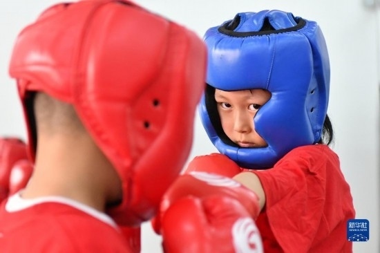 7月12日,小朋友在山東省煙臺(tái)市福山區(qū)一家搏擊訓(xùn)練館進(jìn)行搏擊訓(xùn)練。
