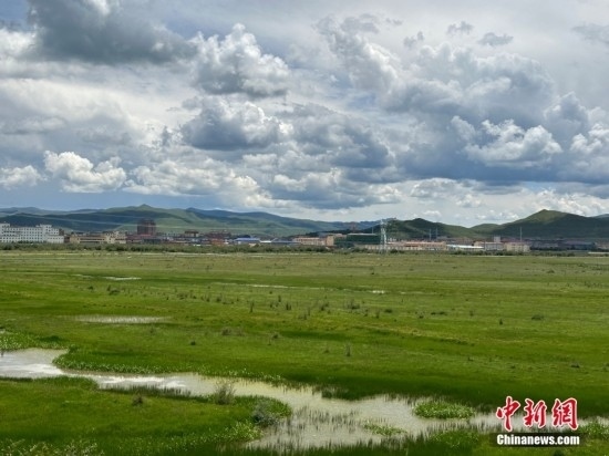 紅原也是全國(guó)三大濕地之一——若爾蓋濕地的重要組成部分。 圖為紅原牦?,F(xiàn)代農(nóng)業(yè)園區(qū)前的濕地。