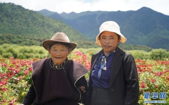 家在朵當(dāng)(卡達(dá))村的索朗卓瑪帶著自己81歲的母親前來賞花。她說,“村子里能開出這么漂亮的花,感到特別高興。帶媽媽來賞花,再拍拍照,很開心?!蹦概说男δ樤诨ǘ涞挠骋r下更加燦爛。