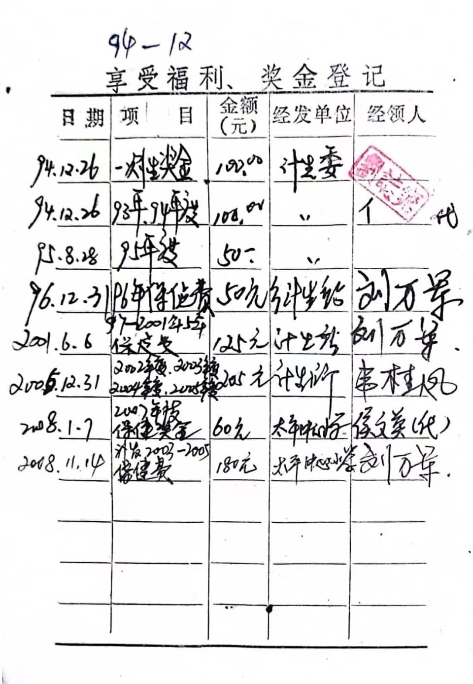 獨(dú)生子女費(fèi)用發(fā)放的相關(guān)證明。圖/劉萬(wàn)軍提供