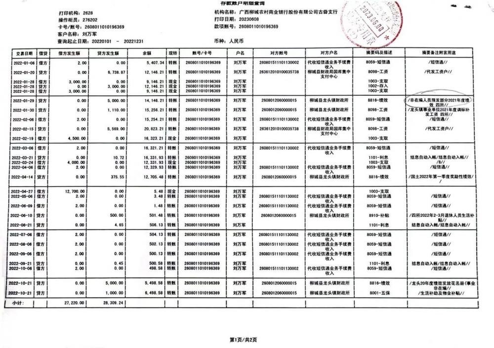 劉萬(wàn)軍的銀行流水上注明了“非在編人員”。圖/劉萬(wàn)軍提供