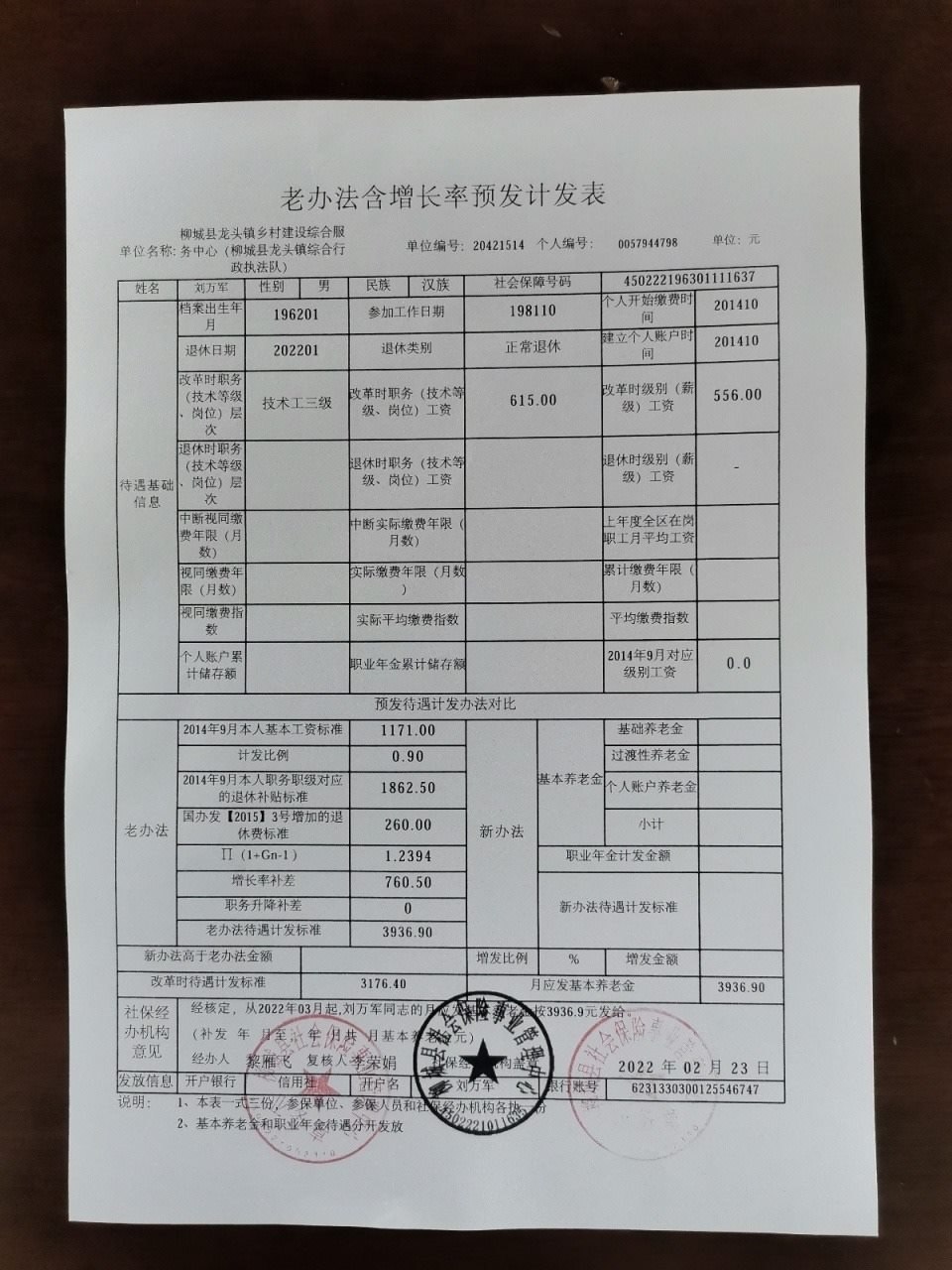 我是一個(gè)在職在編人員,我這里有一張《老辦法含增長(zhǎng)率預(yù)發(fā)計(jì)發(fā)表》(根據(jù)表上信息,其參加工作日期為1981年10月,個(gè)人開(kāi)始繳費(fèi)時(shí)間為2014年10月),我的社保計(jì)算年限是從公務(wù)員的社保改革,也就是2014年開(kāi)始算,相當(dāng)于之前的工齡都是沒(méi)有計(jì)算在內(nèi)的。