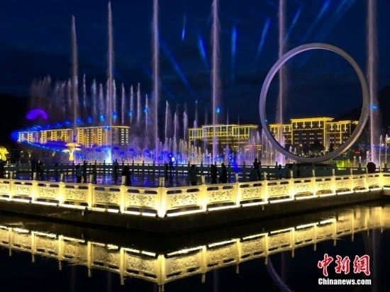 音樂水秀噴泉位于工布公園人工生態(tài)湖中。