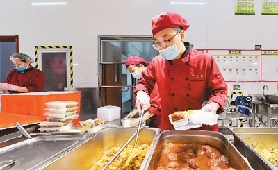 8月1日,在天津市武清區(qū)職業(yè)教育中心臨時(shí)安置點(diǎn),工作人員為永定河泛區(qū)轉(zhuǎn)移人員準(zhǔn)備午飯。新華社記者 孫凡越攝