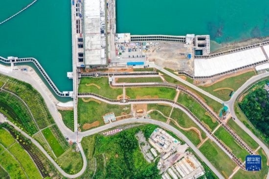 9月2日拍攝的廣西大藤峽水利樞紐黔江主壩魚道(無人機照片)。新華社記者 曹祎銘 攝