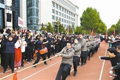 拔河是最后一個項目。賽場兩側(cè)人頭攢動、摩肩接踵,大家無不關(guān)注著這場團(tuán)結(jié)與力量的比試。掌聲、加油聲、歡呼聲響徹云霄,在一場場激烈對抗中,全場氣氛一次次達(dá)到高潮。