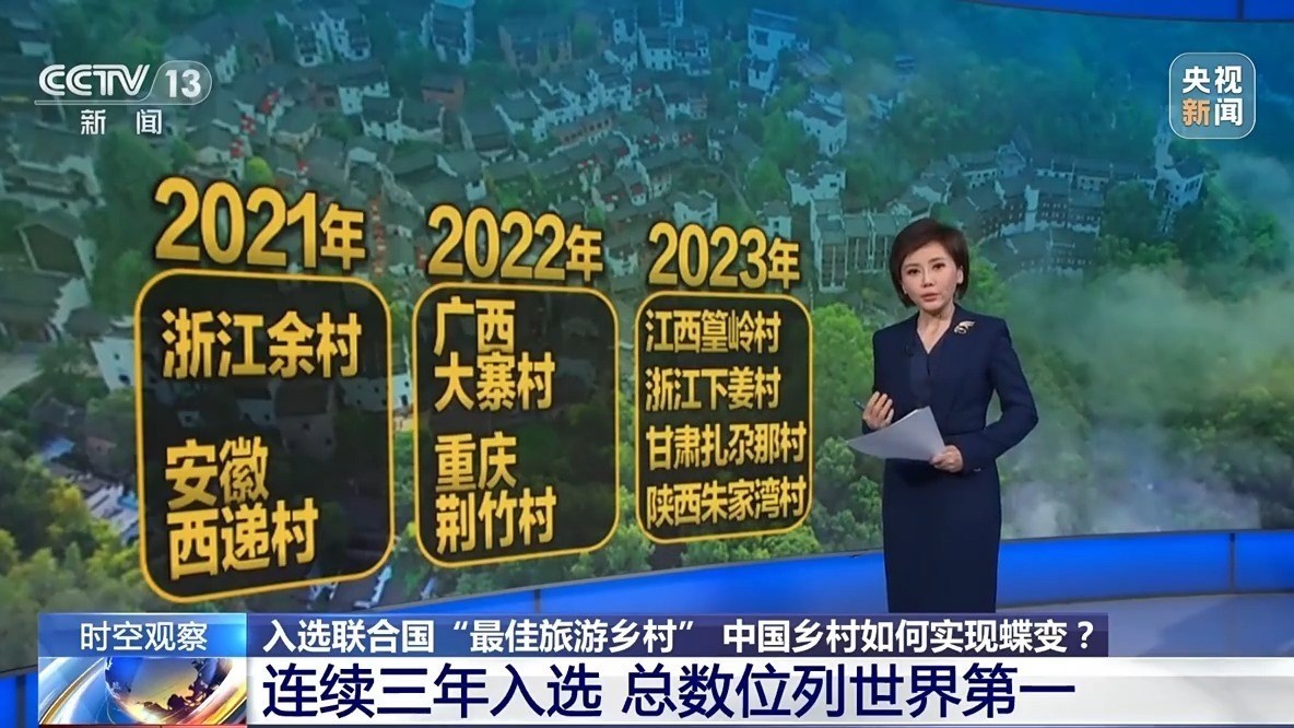 中國是從2021年就開始參與這個(gè)評(píng)選了,所以前兩屆也都有入選鄉(xiāng)村,2021年入選的是浙江余村、安徽西遞村;2022年入選的是廣西大寨村、重慶荊竹村,加上今年入選的四個(gè)村子,我國入選的總數(shù)已經(jīng)達(dá)到8個(gè),目前是全世界擁有“最佳旅游鄉(xiāng)村”最多的國家。