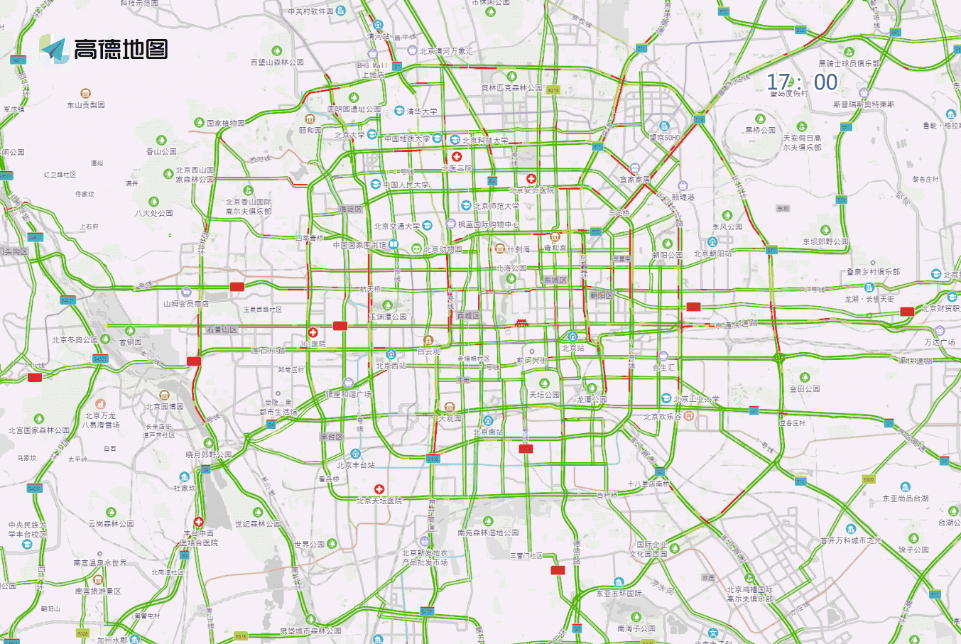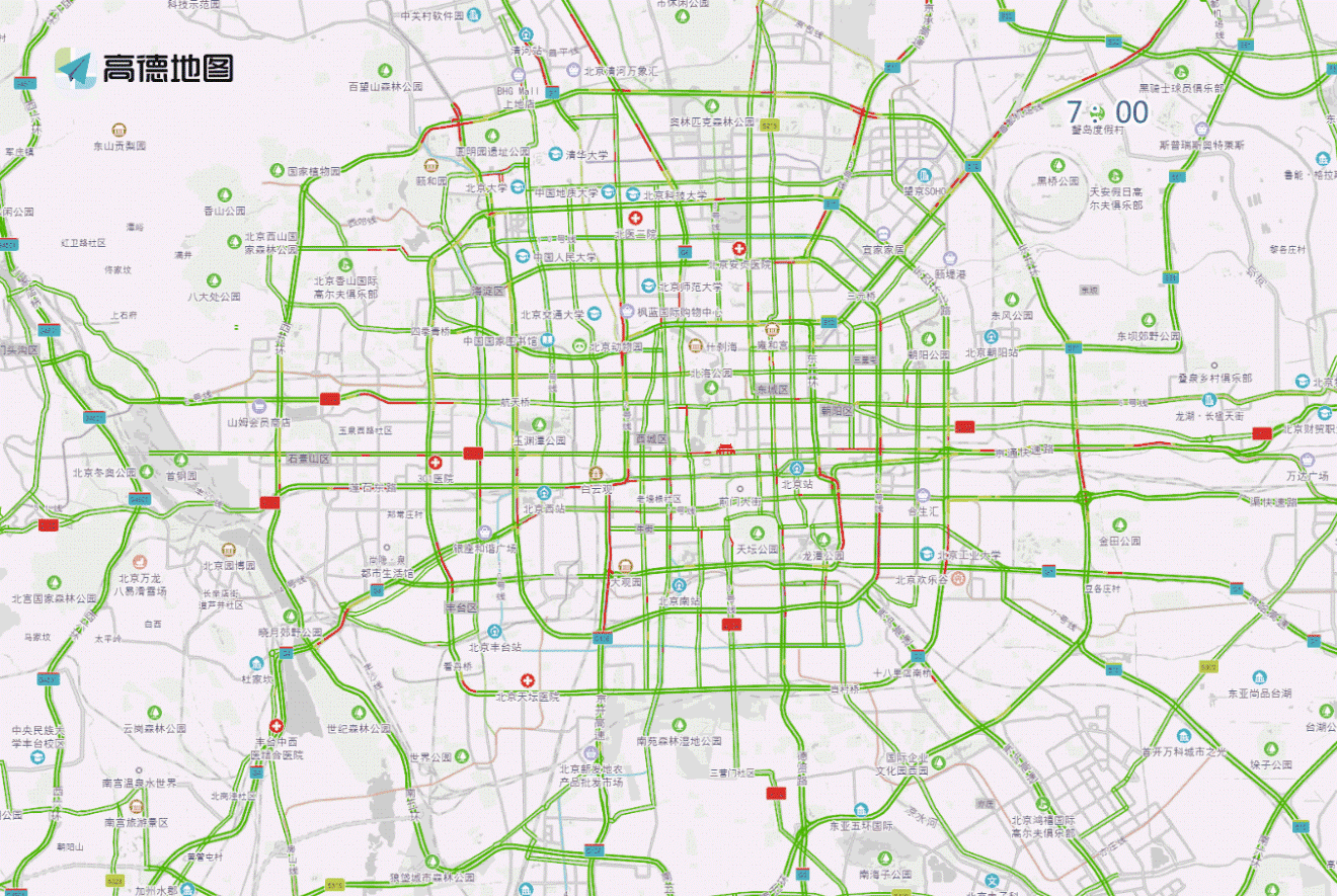工作日早間至上午時段,預(yù)計兒研所、兒童醫(yī)院、北醫(yī)三院、北京醫(yī)院、同仁醫(yī)院、西苑醫(yī)院、積水潭醫(yī)院等醫(yī)院門前及周邊道路車流量較大,高峰時段預(yù)計為7至13時。