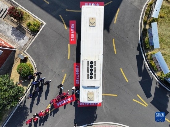 12月1日,在長沙市望城區(qū)新河學校,學生參加汽車盲區(qū)體驗活動(無人機照片)。