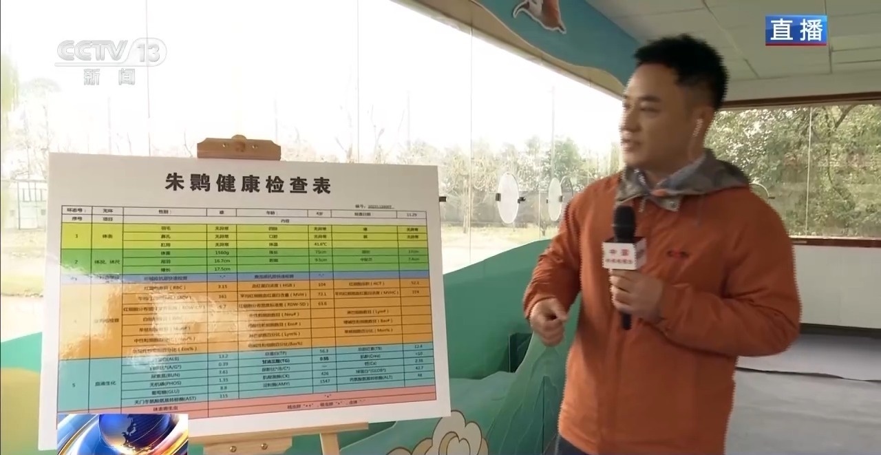 另一邊,保健醫(yī)生們正在給朱鹮抽血。完成抽血之后,朱鹮的血樣會通過機器完成血常規(guī)、生化指標和寄生蟲檢測等50多項檢查,最終形成一張健康檢查表,相當于我們的體檢。這樣精確的健康監(jiān)測,就是保證朱鹮種源質量的依據。