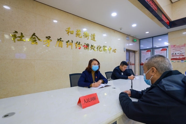 12月8日,在天津市紅橋區(qū)和苑街道社會(huì)矛盾糾紛調(diào)處化解中心,金牌調(diào)解員在詢問(wèn)群眾調(diào)解需求。
