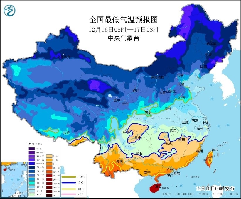 中央氣象臺(tái)12月16日06時(shí)發(fā)布寒潮藍(lán)色預(yù)警: