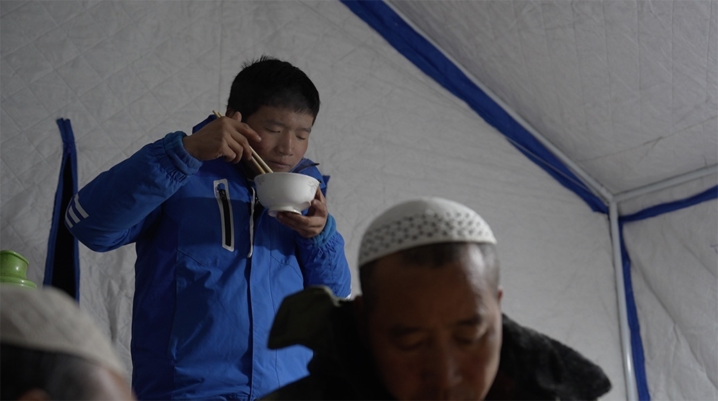 12月20日,馬國忠一家回到村里,拿塑料布在家附近搭了個簡易帳篷,兩根木頭、一條橫梁支起來,怕煙筒把塑料烤化,帳篷里不能烤火,頂多防風,但馬國忠覺得比車里強多了。家里的電熱毯拿出來鋪上,他才睡了個安穩(wěn)覺。只是半夜來了余震,又醒了。他止不住想:下一步怎么辦?后面會不會繼續(xù)搖?他家鋼管焊的牛棚頂晃得“乒乒乓乓”響。