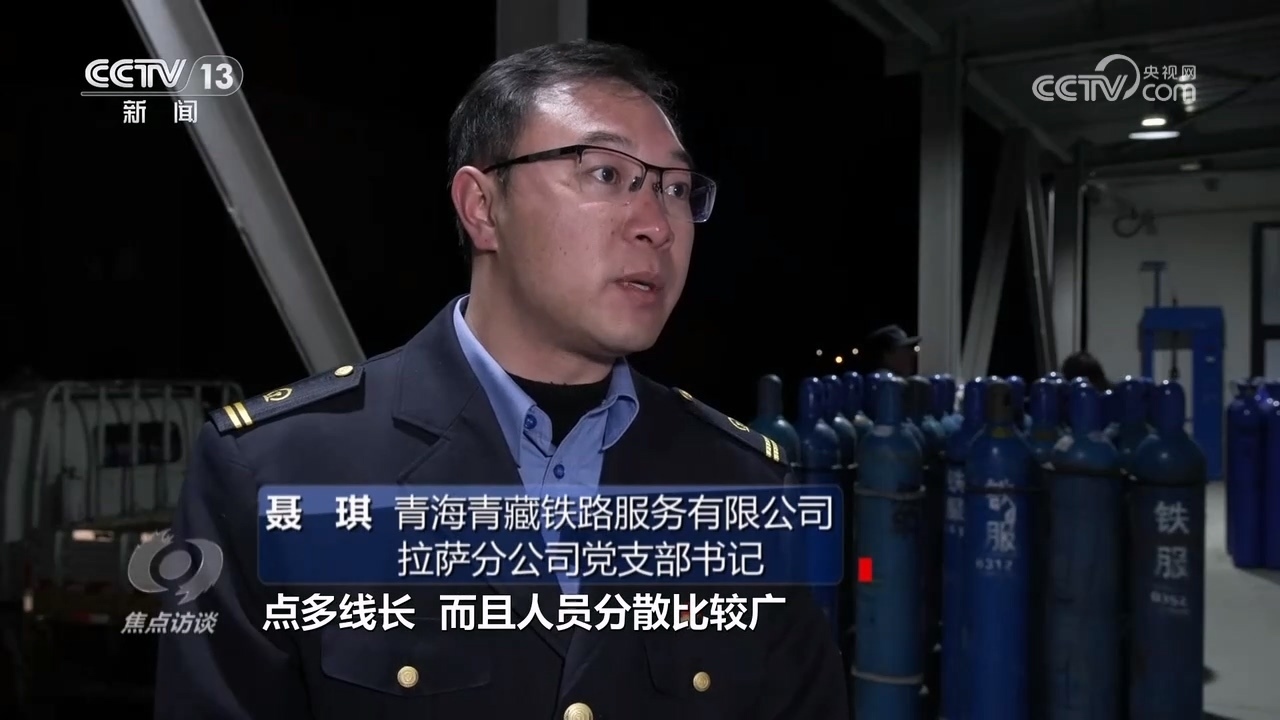 央視網(wǎng)消息(焦點訪談):2024年春運已經(jīng)拉開大幕,全國鐵路預(yù)計發(fā)送旅客4.8億人次,日均1200萬人次,同比2023年春運增長37.9%。跨越世界屋脊的青藏鐵路被人們稱作“天路”,它全長1956公里,其中有960公里位于海拔4000米以上的高原之上。為了保證這條天路的正常運行,許多鐵路員工承受著嚴重的高原反應(yīng)常年堅守在這里。對他們而言,有一種物資重要性幾乎就等同于食物和水,這種物資就是氧氣。有一群天路送氧人常年奔波在雪域高原,任務(wù)就是把一瓶瓶氧氣送到天路沿線的站點。就在不久前,記者隨同天路送氧人一起踏上了送氧之路。