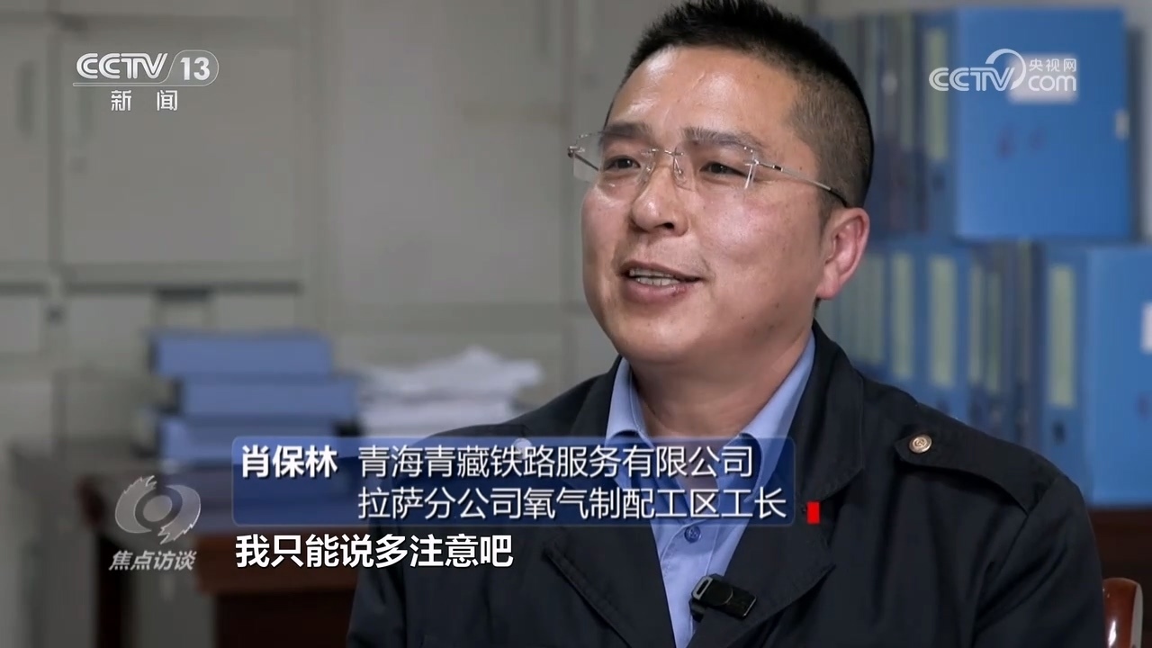 青海青藏鐵路服務(wù)有限公司拉薩分公司氧氣制配工區(qū)工長肖保林:“家里面他們也比較擔心,我只能多注意。我比較喜歡運動,增加心肺功能,盡可能適應(yīng)高海拔地區(qū)重體力作業(yè)。”
