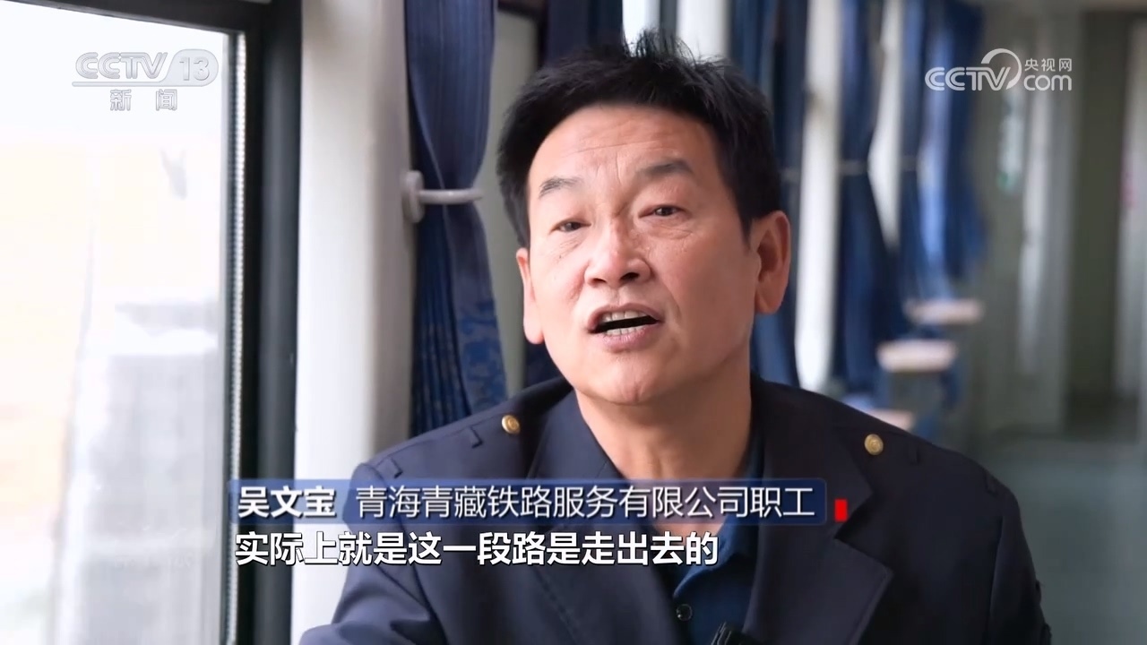 青海青藏鐵路服務(wù)有限公司職工吳文寶:“不能等著雪化了再把車開出去,我們就是司機開車,我在前面拿著個竹竿撥拉,看看怎么走,實際上這一段路是走出去的。”