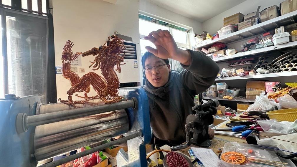 在村民楊訓(xùn)政不大的鋁編工作室內(nèi),簡易貨架上一排排銅色鋁線編制成的藝術(shù)品讓人目不暇接。一條條鋁制彈簧經(jīng)過村民巧妙處理后,成了工藝品市場的搶手貨:發(fā)財樹、恐龍、摩托車、機(jī)器人……“我這鋁編雖然產(chǎn)量低、規(guī)模小,訂單可已經(jīng)排到了今年10月底。龍年將至,來自海內(nèi)外的訂單讓大家年前忙得不亦樂乎?!睏钣?xùn)政一邊用鉗子擺弄著鋁編小龍,一邊告訴記者。