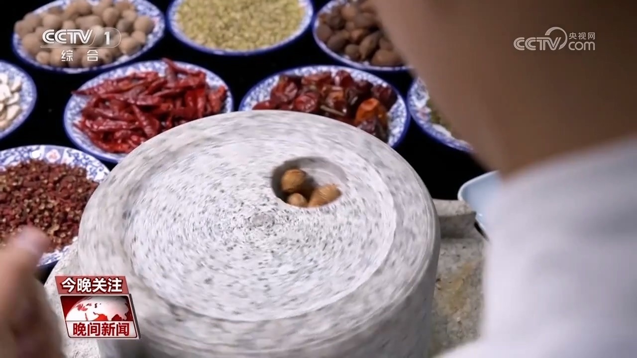 經(jīng)過傳統(tǒng)石磨碾制的料包,散發(fā)出獨(dú)特的香味。劉超群發(fā)現(xiàn),隨著生活水平越來越好,人們對(duì)口味的要求也越來越高,因此他更要嚴(yán)選食材。比如,雞肉必須得是散養(yǎng)的溜達(dá)雞,吃起來肉質(zhì)更緊致、鮮嫩。此外,劉超群還不斷嘗試,在湯底中加入中藥材,形成獨(dú)家的口味和配方。