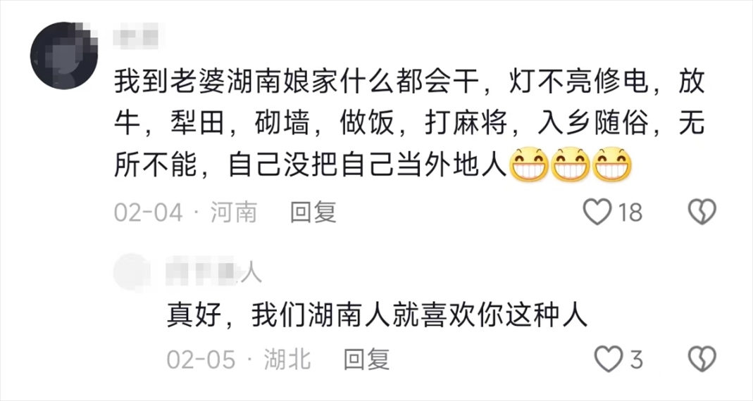 看到“女婿來(lái)丈母娘家的統(tǒng)一狀態(tài)”上熱搜,有的外地媳婦表示,自己也是一樣,在過(guò)年時(shí)充滿(mǎn)尷尬。
