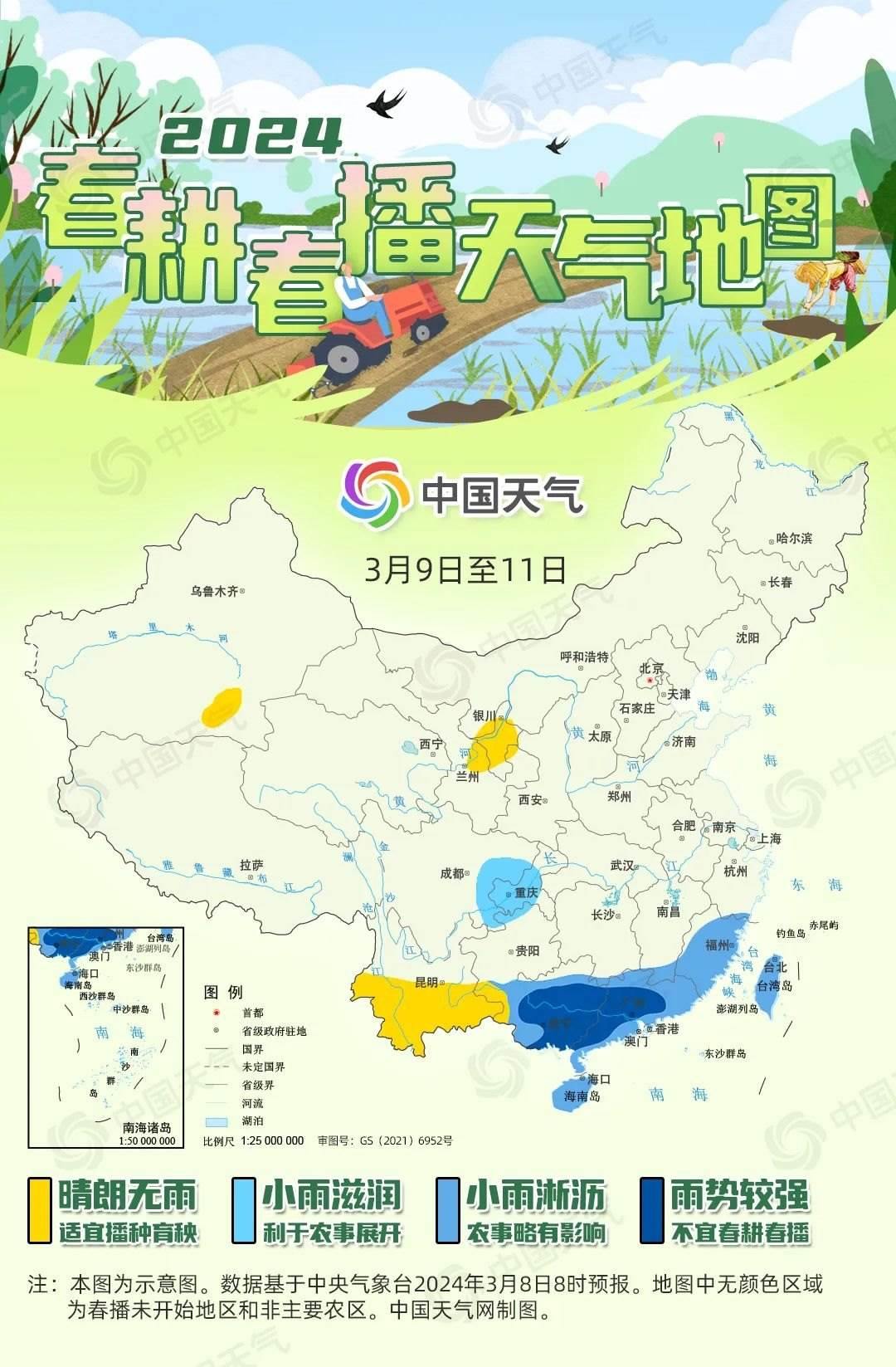 中國天氣網(wǎng)氣象分析師李靚介紹,3月9日至11日,廣西西部、廣東東部和北部、福建大部、海南島等地小雨淅瀝,對田間作業(yè)略有影響。廣西東部、廣東西部和中部有2至3天中雨,部分地區(qū)甚至將有大雨或暴雨,對春耕春播作業(yè)影響較為明顯。