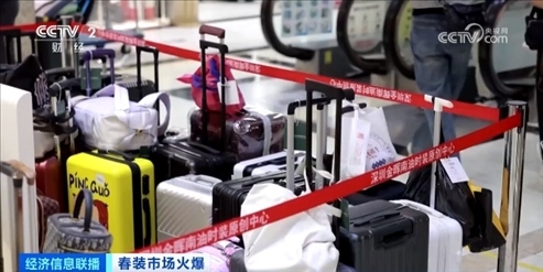 除了工廠訂單增加之外,服裝批發(fā)市場也迎來“開門紅”,在深圳南油服裝批發(fā)市場,人頭攢動,店鋪門口都堆疊著即將發(fā)貨的大包小包