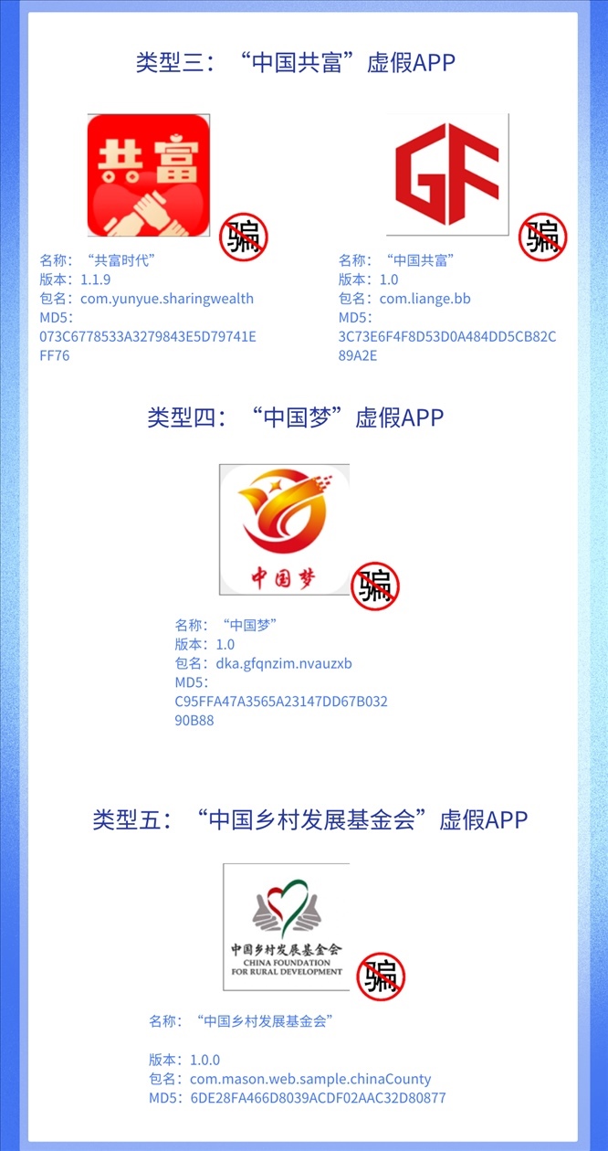 近期一些不法分子套用各類官方公開信息,打著“國家支持項目”“國家惠民政策”旗號,制作出一大批App,在其中編造虛假投資理財項目,以高收益為誘餌,忽悠不明真相的群眾在App“投資”進而實施詐騙。