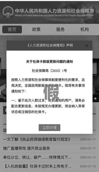 套路二 仿冒人力資源和社會(huì)保障部官網(wǎng),并在仿冒網(wǎng)站上設(shè)置釣魚(yú)網(wǎng)頁(yè),誘騙當(dāng)事人填寫(xiě)姓名、身份證號(hào)等信息,再利用竊取的個(gè)人信息實(shí)施詐騙。持卡人在收到類似詐騙短信時(shí),可通過(guò)撥打12333服務(wù)熱線或前往人社服務(wù)大廳核實(shí)等方式,確認(rèn)社保卡狀態(tài)是否正常。